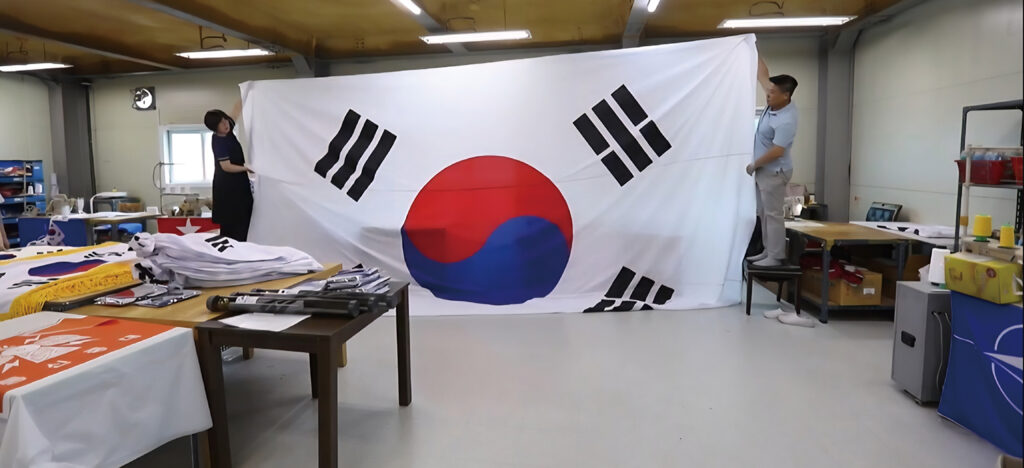 대형태극기는 환경을 고려해 내구성이 뛰어난 원단을 선택했으며, 가장자리 이중 보강 박음으로 제작 하였습니다.크기가 클수록 마감의 차이는 더 분명하게 드러납니다.